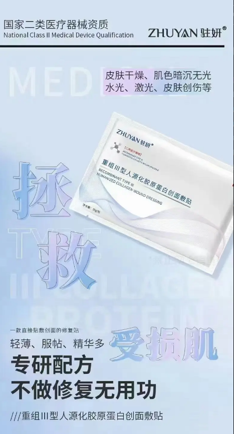 品名:驻妍·重组Ⅲ型人源化胶原蛋白创面敷贴(械二类)